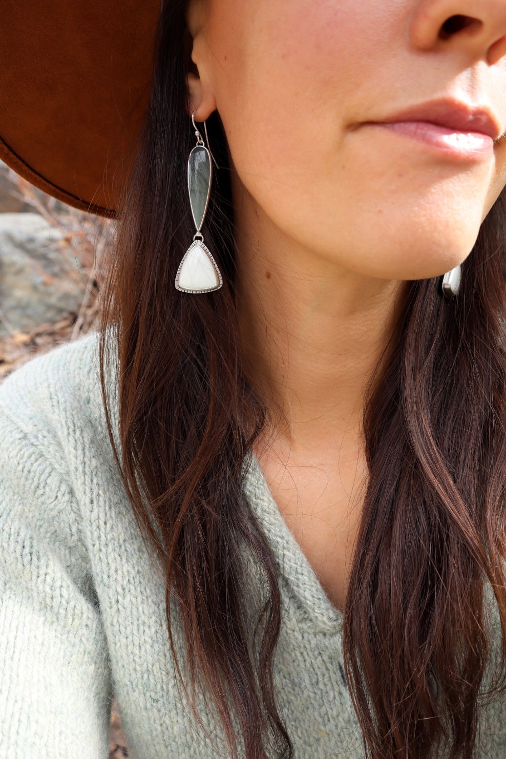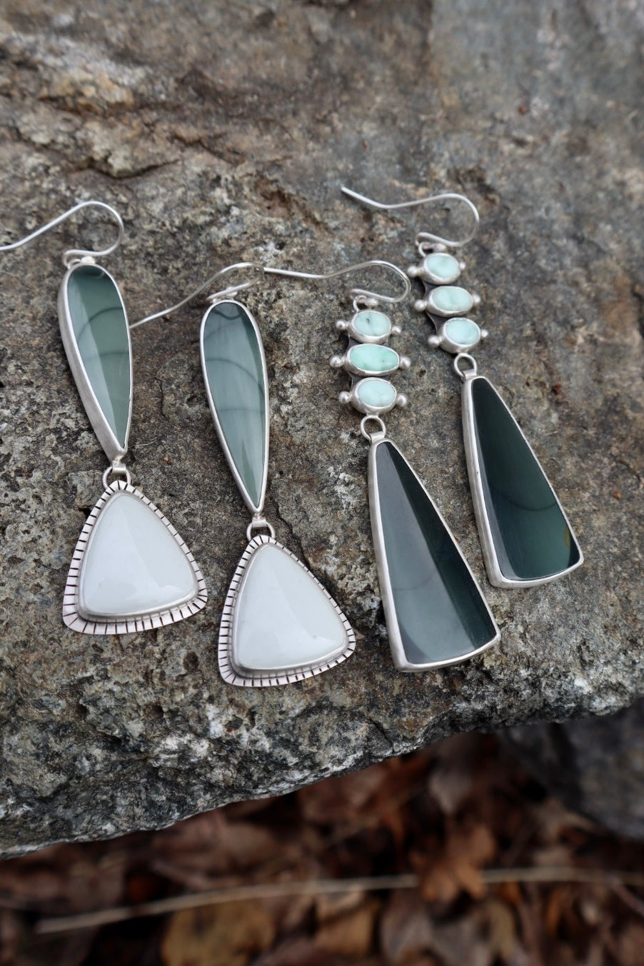 Oof...this combination of stones has to be one my all time favorites. The soft yet rich greens of the jasper are perfectly complimented by the glorious white of the Ivory Creek. There is something so refreshing about this pair. They are a joy to wear.