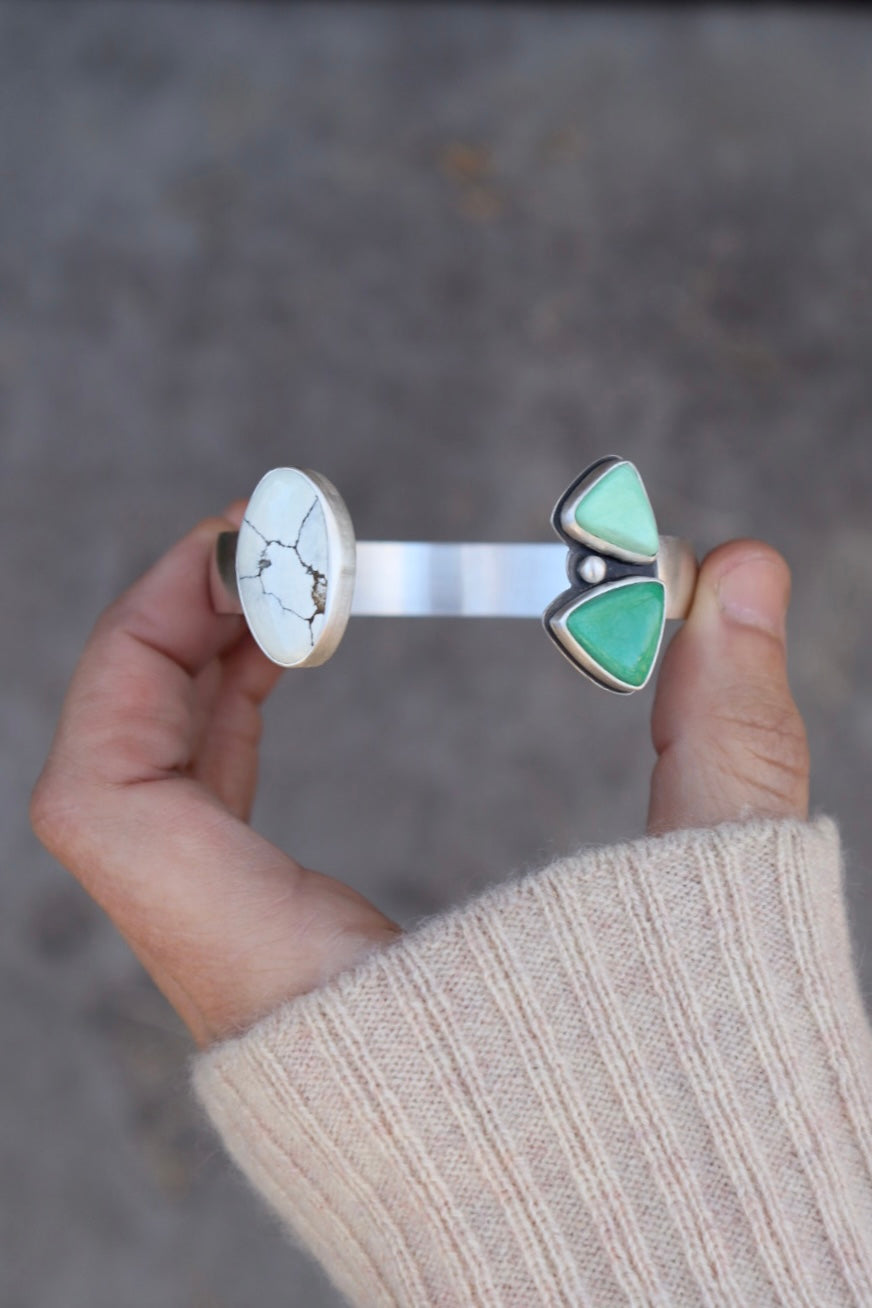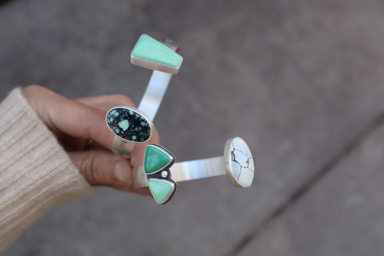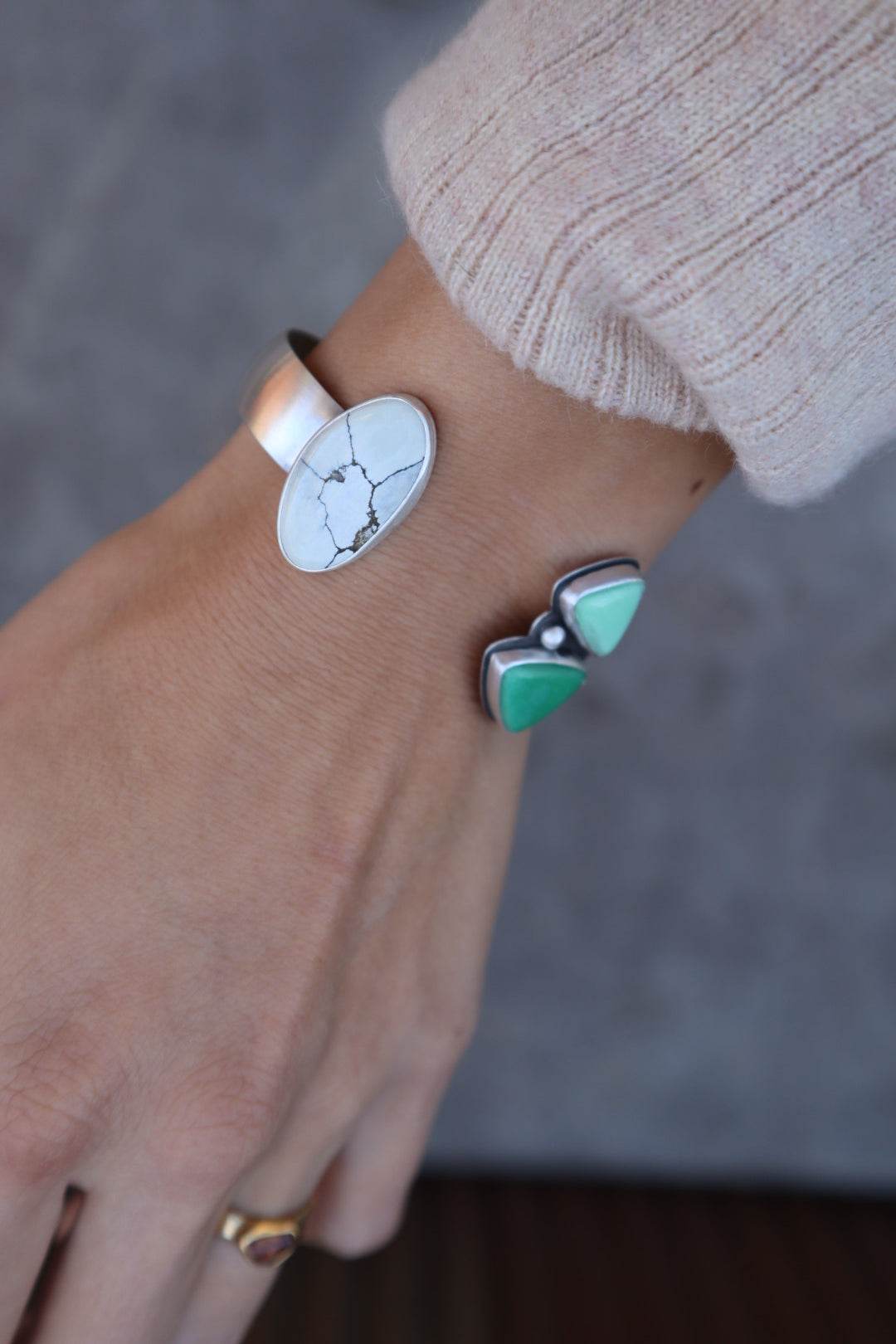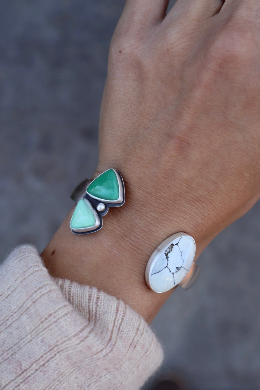 I've been dreaming up a design like this for a long time. I love the combination of these stones that are both bright and colorful combined with the mellow, calming whites of Ivory Creek. The stones sit nicely on top of the wrist.