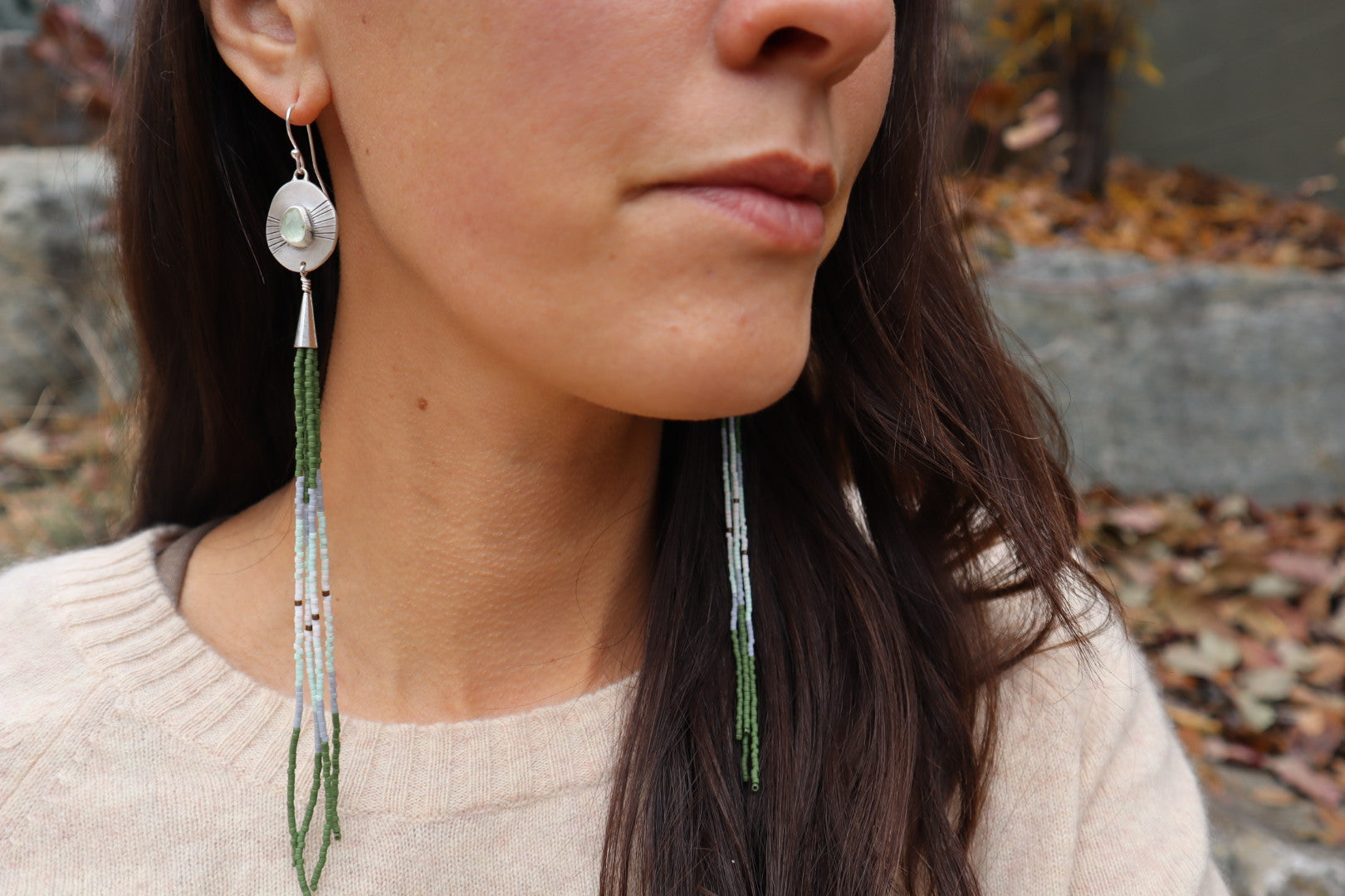 I take so much joy in making these pairs of earrings. It's such a delight to combine my love of silver with the colorful/playfulness of seed beads. I like to make them loooong...just because they seem to want to be that long.