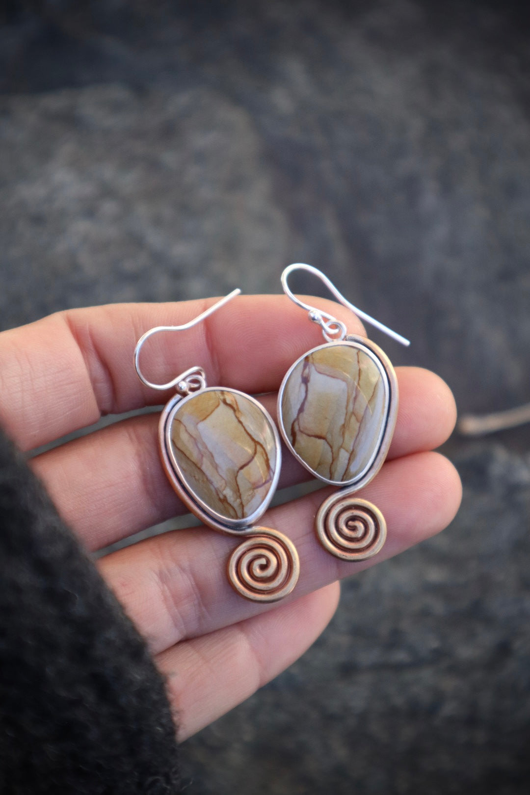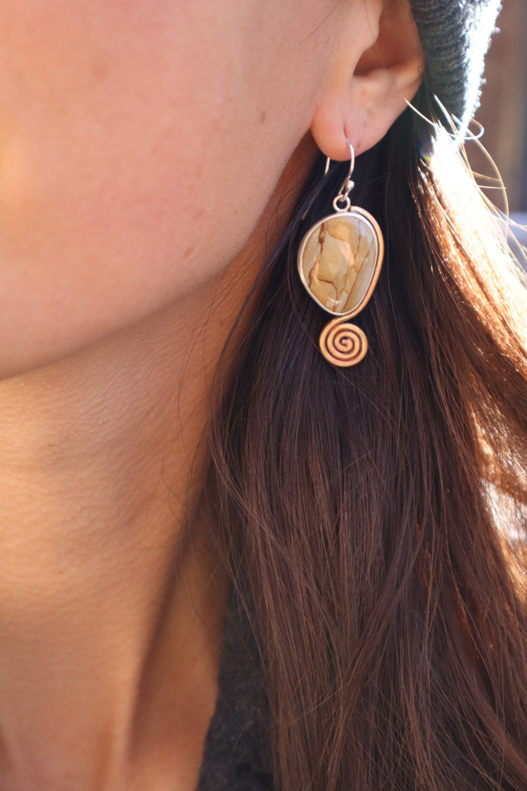 Mm, there is such an earthly sweetness to this pair of stones. They transport you straight to the heart of the desert. I wanted to highlight their warmth with brass. Recently the spiral shape has been showing up in my life with frequency. In many cultural traditions they symbolize growth, transformation and evolution.