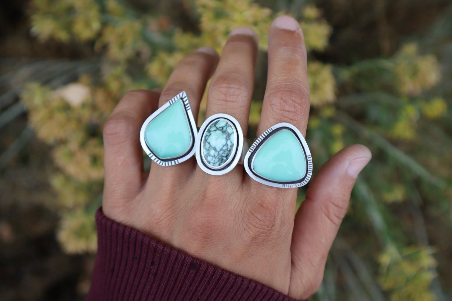 This cut of Australian Chrysoprase is...just...wow. The color is so bold and so alive. There's a perfection in both the color and cut of this stone that reminds me of a morning dew drop. Something so innocent and sweet. The band is a solid, thick, low-dome band.