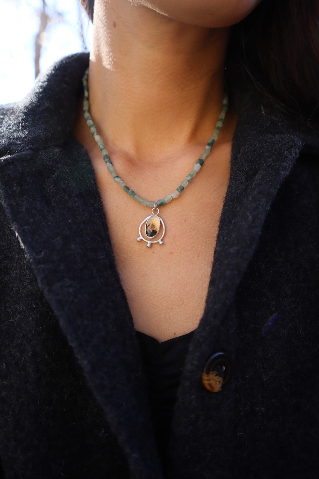 The green hues of these beads have always captured my heart. And I think they compliment dendritic agate beautifully. Together they make a delightful necklace!