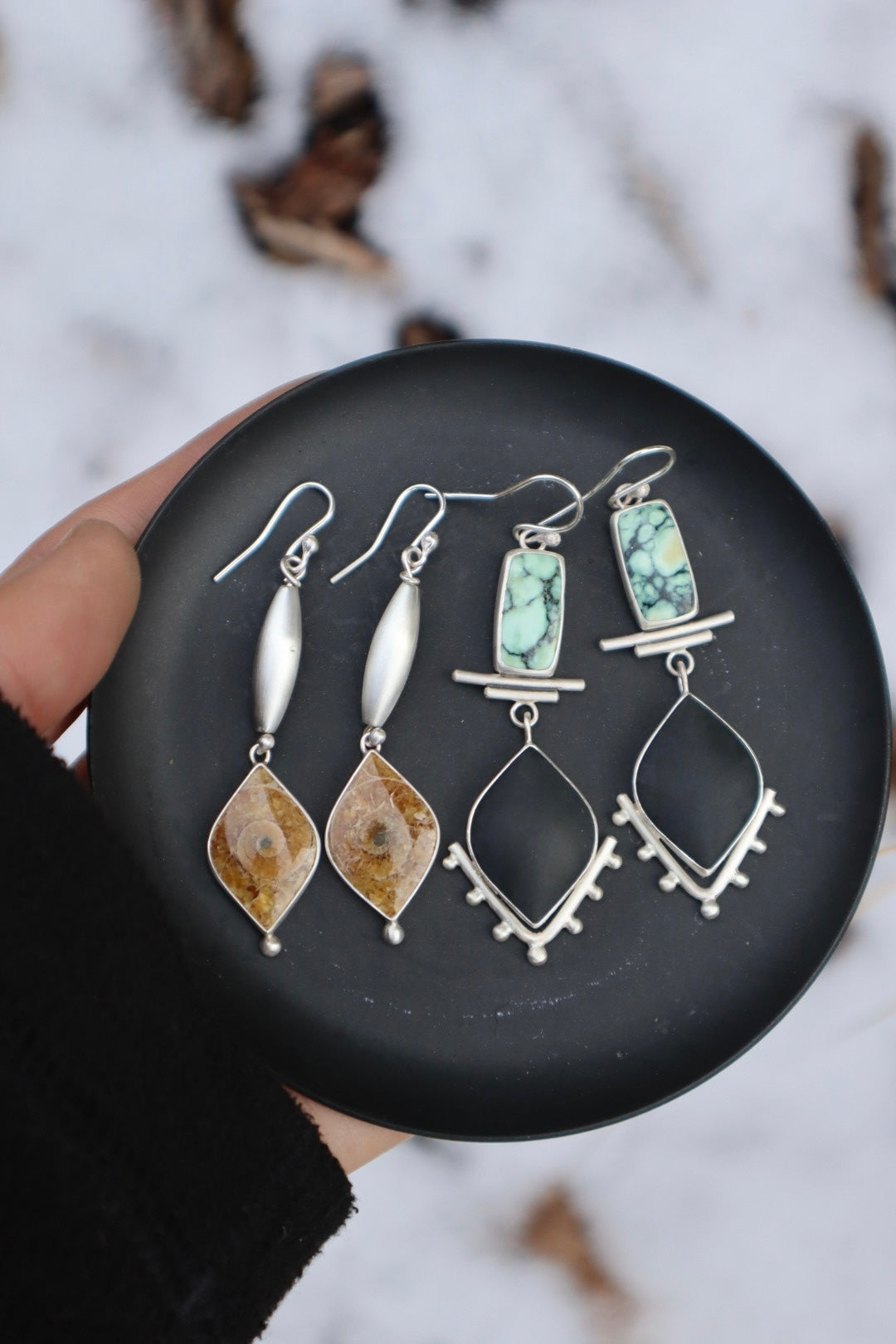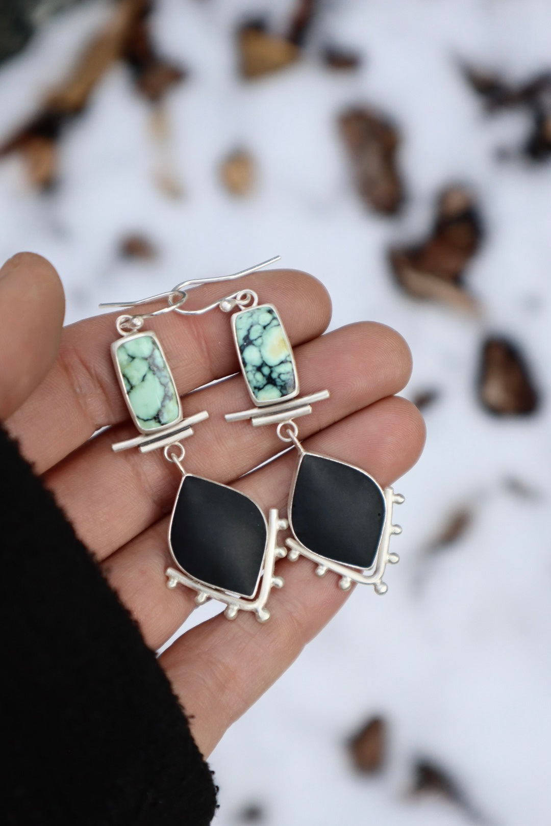 Stone: Angel Wing Variscite & Obsidian polished to a matte finish