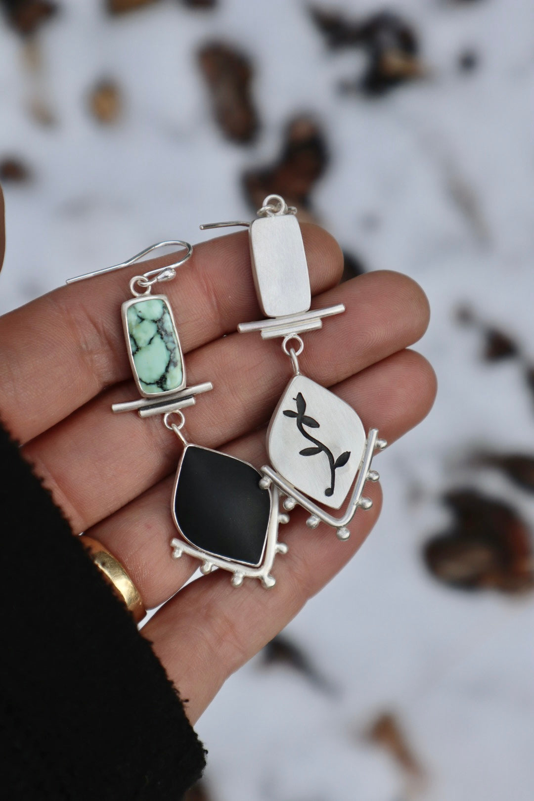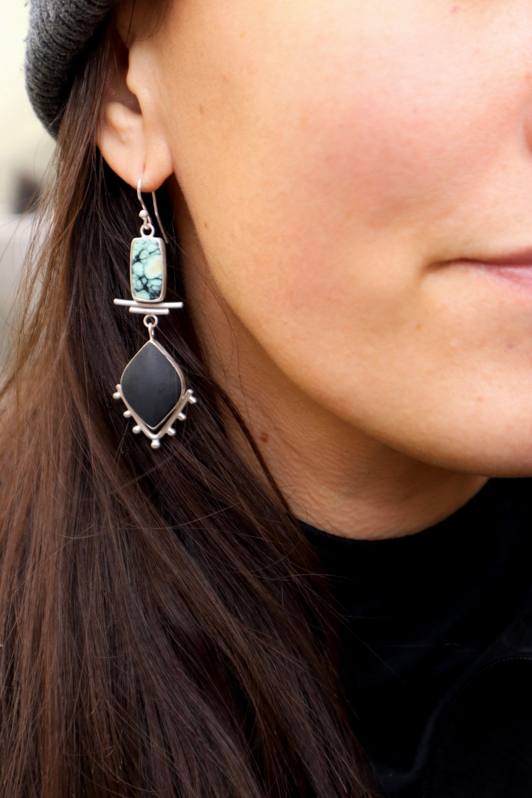 Ooooo- this combination is something else! The colors of the stones pull the whole piece into balance. Light and dark, colorful and black. I wanted to play with the silver design as well to make it into a truly unique piece.